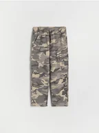 Spodnie typu cargo, wykonane z bawełnianej tkaniny.