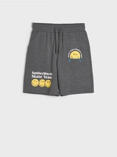 Sinsay - Szorty dresowe SmileyWorld® - szary - 2 kieszenie z przodu,wiązanie i gumka w pasie,ozdobny nadruk