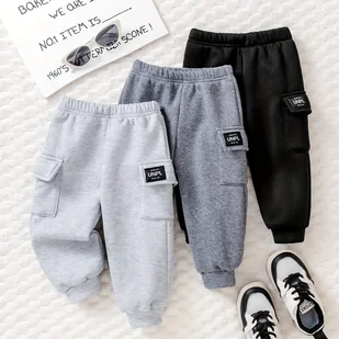 TEMU Nowy zestaw 3 szt. spodni cargo dla chłopców na jesień/zimę z kieszeniami + długie spodnie, idealne na co dzień i do , doskonałe na zewnątrz