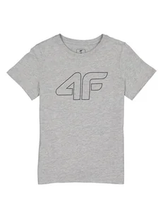 Koszulka w kolorze szarym - z dodatkiem bawełny - dekolt: okrągły - nadruk: logo - krój: prosty - wzór: melanżowy