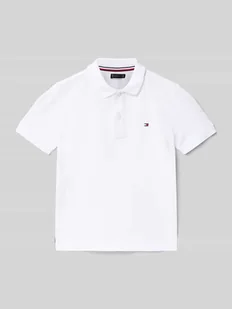 Dziecięca koszulka polo od Tommy Hilfiger Teens;efekt: jednolity kolor;Krój: krój regular fit;Aplikacja: wyhaftowane logo;kształt kołnierza: kołnierzyk polo;Listwa guzikowa: