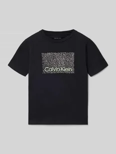 dziecięcy t-shirt marki Calvin Klein Jeans;Model „Performation”;efekt: jednolity kolor;Dopasowanie: krój regular fit;Aplikacja: nadruk z logo;dekolt: okrągły dekolt;rękaw: krótki rękaw;Materiał: czysta bawełna