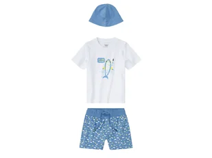 lupilu® Komplet chłopięcy (koszulka + spodenki + czapka) (110/116, Biały-niebieski)