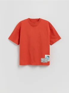 Reserved - Bawełniany t-shirt z nadrukiem - czerwony