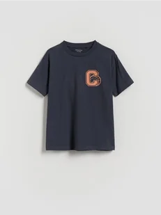 Reserved - Bawełniany t-shirt z nadrukiem - granatowy