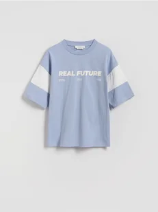 Reserved - Bawełniany t-shirt z nadrukiem - jasnoniebieski