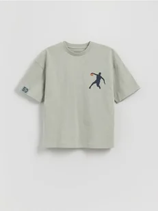 Reserved - Bawełniany t-shirt z nadrukiem - jasnoturkusowy