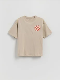 Reserved - Bawełniany t-shirt z nadrukiem - kremowy