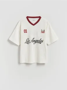 Reserved - Bawełniany t-shirt - złamana biel