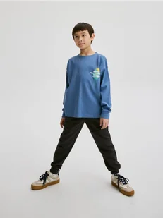 Reserved - Longsleeve oversize z nadrukiem - granatowy