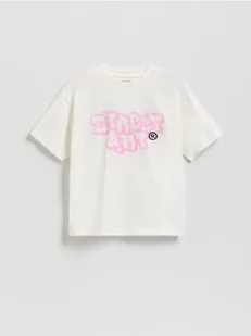 T-shirt o swobodnym fasonie, wykonany z bawełnianej dzianiny.