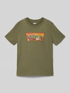 T-shirt dziecięcy Levi’s® Kids;Mieszanka bawełny;Krój regular fit;Model ‘SUNRISE DESERT’;Okrągły dekolt;Nadruk z logo;Długość tyłu w rozmiarze 140: 53 cm