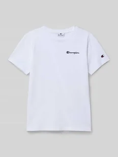 T-shirt dziecięcy CHAMPION;Czysta bawełna;Krój regular fit;Prążkowany okrągły dekolt;Wyhaftowane logo;Długość tyłu w rozmiarze 140: 57 cm