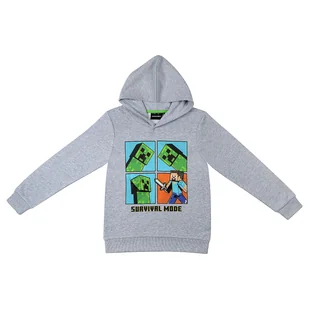 Wygodna bluza chłopięca MINECRAFT, wzór Survival Mode, w kolorze szary melanż, ozdobiona atrakcyjnym wzorem, przypadnie do gustu każdemu chłopcu, zwłaszcza fanowi kultowej gry MINECRAFT. Wysokiej jakości dzianina bawełniana z domieszką poliestru i ściągacze sprawią, że bluza świetnie sprawdzi się w jesienne dni.