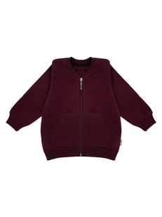 Bluza dresowa, bomberka dla chłopca, ze stójką, w kolorze bordowym. Z przodu dwie kieszonki w typie "kangurka". Ściągacze w rękawach i na dole w kolorze bluz...
