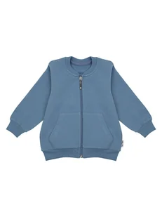 Bluza dresowa, bomberka dla chłopca, ze stójką, w kolorze niebieskim. Z przodu dwie kieszonki w typie "kangurka". Ściągacze w rękawach i na dole w kolorze bluzy, zapinana na praktyczny zamek.