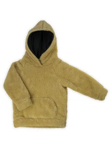 Wyprodukowano w Polsce Milutka bluza dla chłopca typu kangurka. Wykonana z beżowego futerka kaptur wewnątrz podszyty 100% grafitową bawełną. Fason jest luźny, bardzo wygodny. Na przodzie został ozdobiony kieszonką. Idealna na jesienno-zimowe dni.