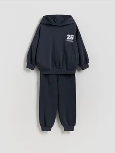 Komplet składający się z bluzy i spodni, wykonany z bawełnianej dzianiny.