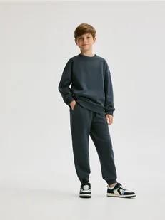 Komplet składający się z bluzy i spodni, wykonany z bawełnianej dzianiny.