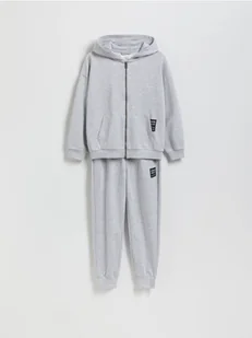 Komplet składający się z bluzy i spodni, wykonany z bawełnianej dzianiny.