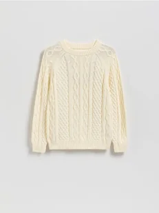 Sweter o prostym kroju, wykonany z bawełnianej dzianiny.