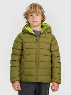 Dwustronna kurtka dziecięca 4F z ociepleniem – ciepło, wygoda i ochrona przed zimnem: Ocieplina poliestrowa zapewnia komfort cieplny w chłodne i zimne dni Hydrofobowa powłoka ogranicza wchłanianie wilgoci i zwiększa ochronę przed deszczem Dwustronna konstrukcja możliwość zmiany wyglądu jednym ruchem Wysoki kołnierz osłania szyję przed wiatrem i zimnem Mankiety z lamówką dobre dopasowanie i ochrona przed utratą ciepła 2 kieszenie boczne zamykane na zamek, idealne na drobiazgi 2 kieszenie wewnętrzne otwarte i łatwo dostępne od środka Dół bez regulacji prosty krój, który nie krępuje ruchów Elementy odblaskowe zwiększają widoczność i bezpieczeństwo po zmroku Wygodny krój regular swobodnie układa się na ciele i zapewnia wygodę Standardowa długość fason sięgający do bioder dla codziennej funkcjonalności Kurtka puchowa dwustronna chłopięca – ciepło i wygoda na co dzień Ta kurtka to solidna warstwa izolacyjna na zimne dni – średnia gramatura wypełnienia i klasyczne pikowanie dbają o komfort cieplny bez zbędnego obciążenia. Idealna do szkoły, na spacer czy aktywności na świeżym powietrzu. Hydrofobowa powłoka chroni przed wilgocią, a zintegrowany kaptur i wysoki kołnierz osłaniają przed wiatrem. Kurtka ma krój regular, elastyczne mankiety i praktyczne kieszenie – 2 zewnętrzne na zamek i 2 wewnętrzne otwarte.
