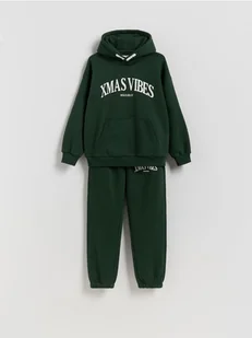 Reserved - Bawełniany komplet z nadrukiem - ciemnozielony