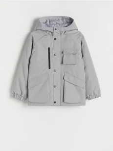 Kurtka o swobodnym fasonie, wykonana z gładkiej tkaniny.