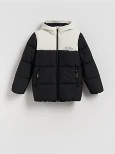 Kurtka o prostym kroju, wykonana z tkaniny o podstawowej wodoodporności.