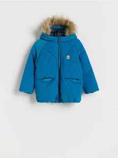 Kurtka o prostym fasonie, wykonana z pikowanej tkaniny z wypełnieniem.