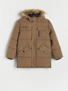 Reserved - Pikowany płaszcz z ociepleniem - ciemnobrązowy