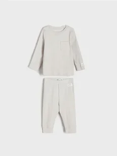 Sinsay - Komplet dresowy - szary - prążkowany materiał,okrągły dekolt zapinany na zatrzaski z boku,długie nogawki zakończone mankietami,ozdobna kieszeń na piersi