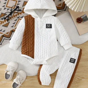 TEMU 2 szt. Dla Chłopców: Bluza z Kapturem w Bloki Kolorystyczne + Spodnie, Jesień/, Urocze Sportowe Ubranie Casual, Idealny na Zewnątrz