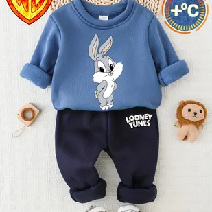 TEMU Bros. Zestaw Ubranek dla Chłopca i Dziewczynki - Bluza i Spodnie z Nadrukiem Królika Bugsa i Looney , Miękka Dzianina, Długi Rękaw, Codzienna