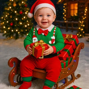 TEMU Chłopięcy świąteczny koszulka z długim rękawem z nadrukiem Świętego Mikołaja z kokardą i spodniami 2-częściowy zestaw - świąteczny czerwony i