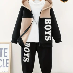 TEMU Jesienno-Zimowy Dla dzieci: Bluza z Kapturem i Zamek, Spodnie w Patchworkowe Wzory – Idealny na Zewnątr