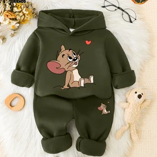 TEMU Zestaw dla chłopców: bluza z kapturem z nadrukiem postaci z kreskówki Tom i Jerry, zaprojektowany do wygodnych sportów na świeżym powietrzu i na