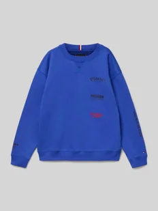 Bluza dziecięca Tommy Hilfiger Teens;Efekt: jednolity kolor;Krój: Krój regular fit;Aplikacja: Nadruk z logo, nadruk z motywem;Kształt kołnierza: Bez dekoltu;Dekolt: