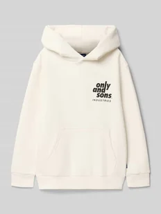 Bluza z kapturem dziecięca Only & Sons;Model ‘Hudson’;Efekt: jednolity kolor;Krój: Krój regular fit ;Aplikacja: Nadruk z logo, nadruk z tyłu;Detale: Kieszeń kangurka;Kształt kołnierza: