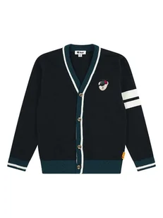 Kardigan w kolorze czarnym - z dodatkiem bawełny - dekolt: V - zapięcie: listwa guzikowa - ściągacz: dekolt, zakończenia rękawów, dolny brzeg - detale: haft z logo - krój: