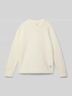 Sweter dziecięcy Calvin Klein Jeans;Mieszanka elastycznych materiałów z dodatkiem wełny i wełny z alpaki;Krój regular fit;Model ‘Fluffy’;Naszywka z logo;Okrągły dekolt;Elastyczne brzegi;Długość tyłu w rozmiarze 140: 54 cm;Długość rękawa w rozmiarze 140: 47 cm