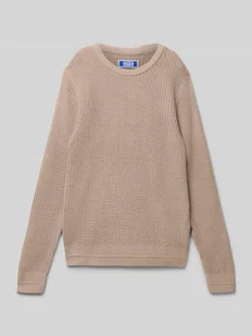Sweter dziecięcy Jack & Jones;Mieszanka materiałów z dodatkiem bawełny;Krój relaxed fit;Model ‘Kaito’;Imitacja dzianiny;Okrągły dekolt;Elastyczne brzegi;Długość tyłu w rozmiarze 140: 53 cm;Długość rękawa w rozmiarze 140: 66 cm