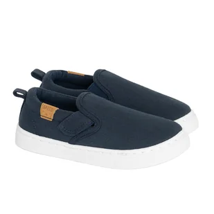 Trampki slip on dla chłopca: z jednej strony zapięcie na mały rzep, z drugiej gumka