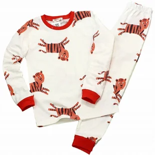 PIŻAMA Bawełniana KOMPLET Tygryski Rękaw PRINT Kremowa 116 - Inny producent