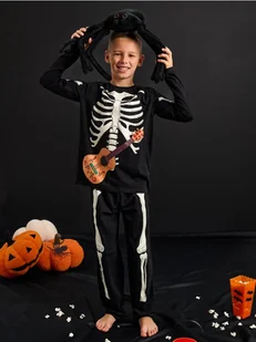 Sinsay - Piżama - czarny - halloweenowy motyw,długie rękawy i nogawki,nadruk kościotrupa,święcący w ciemności,gumka w pasie,okrągły dekolt