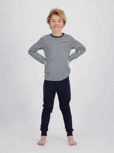 Piżama w kolorze biało-granatowym - dekolt: okrągły - pas / ściągacz: elastyczny - zakończenia nogawek: prążkowany ściągacz - krój: prosty - wzór: mix - nadruk: logo