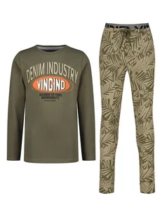 Piżama w kolorze khaki - z dodatkiem bawełny - dekolt: okrągły - pas: ściągacz tunelowy - przymocowany ściągacz tunelowy: tak - zakończenia nogawek: elastyczne - nadruk: