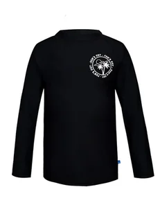 Koszulka kąpielowa "Dune" w kolorze czarnym - właściwości: odporność na chlor, szybkoschnący materiał - ochrona UV: 50+ - kołnierz: stójka - rodzaj rękawa: raglanowy - look: jednokolorowy - nadruk: graficzny