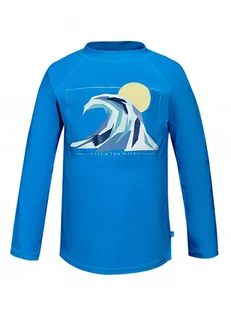 Koszulka kąpielowa "Malik" w kolorze niebieskim - właściwości: odporność na chlor, szybkie wysychanie - ochrona UV: 50+ - kołnierz: stójka - rodzaj rękawa: raglanowy - look: jednokolorowy - nadruk: graficzny