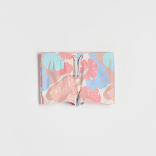 Reserved - Kąpielówki w tropikalny wzór - Kremowy